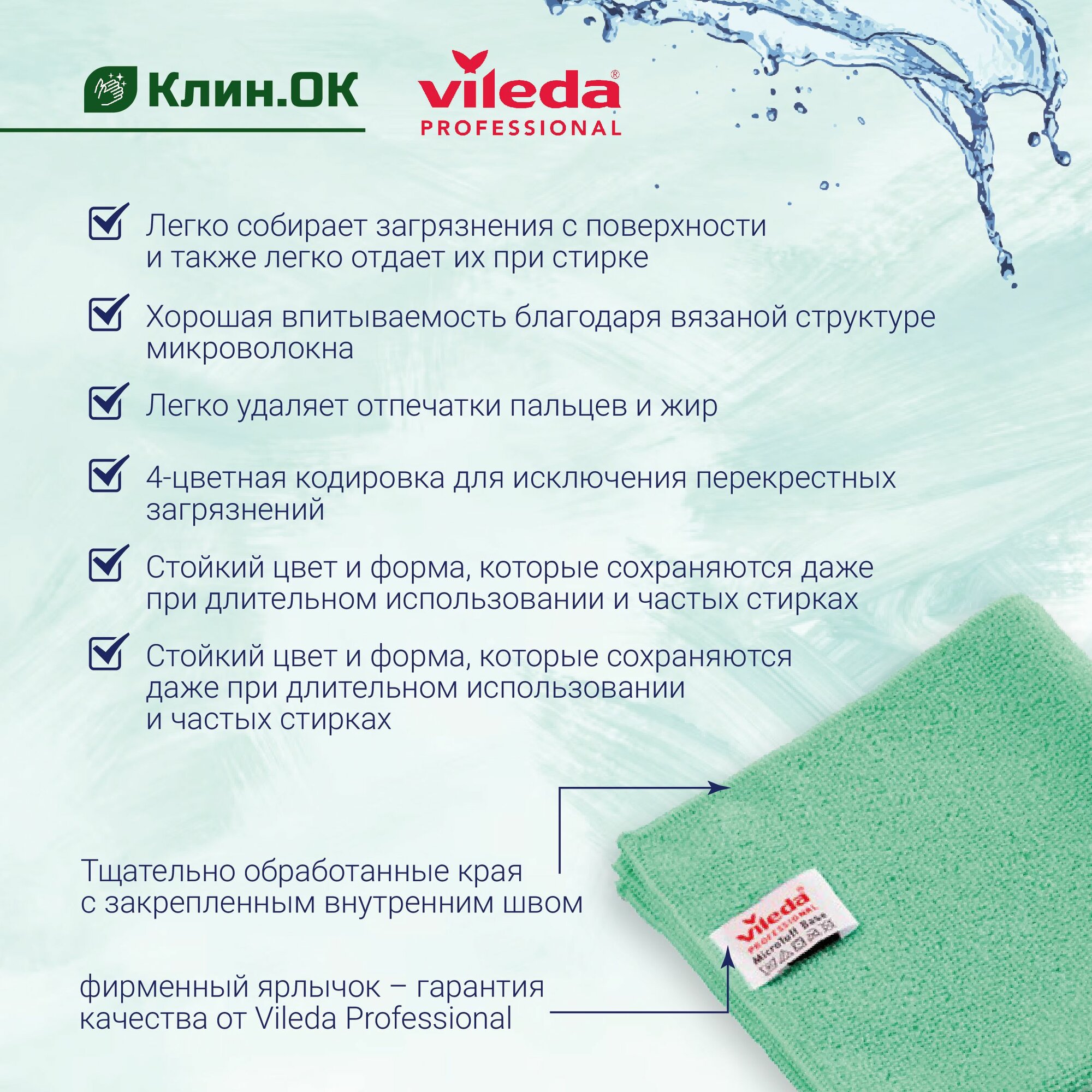 СохранитьСалфетки профессиональные для уборки из вязаного микроволокна Vileda МикроТафф Бэйс 36х36 см, зеленый, 5 шт. интересное: