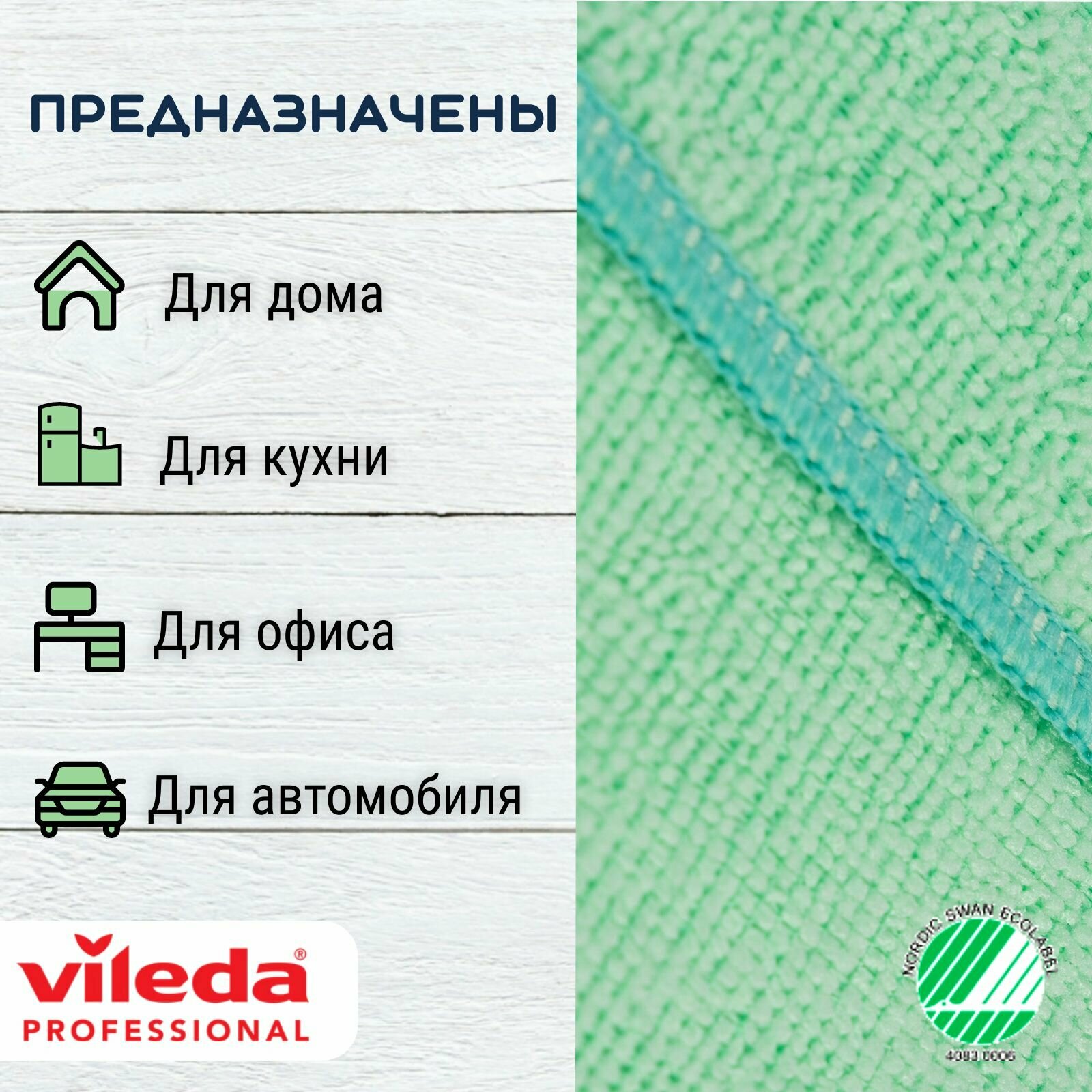 Салфетка Vileda Professional МикроТафф Бэйс, зеленый, 5 шт.