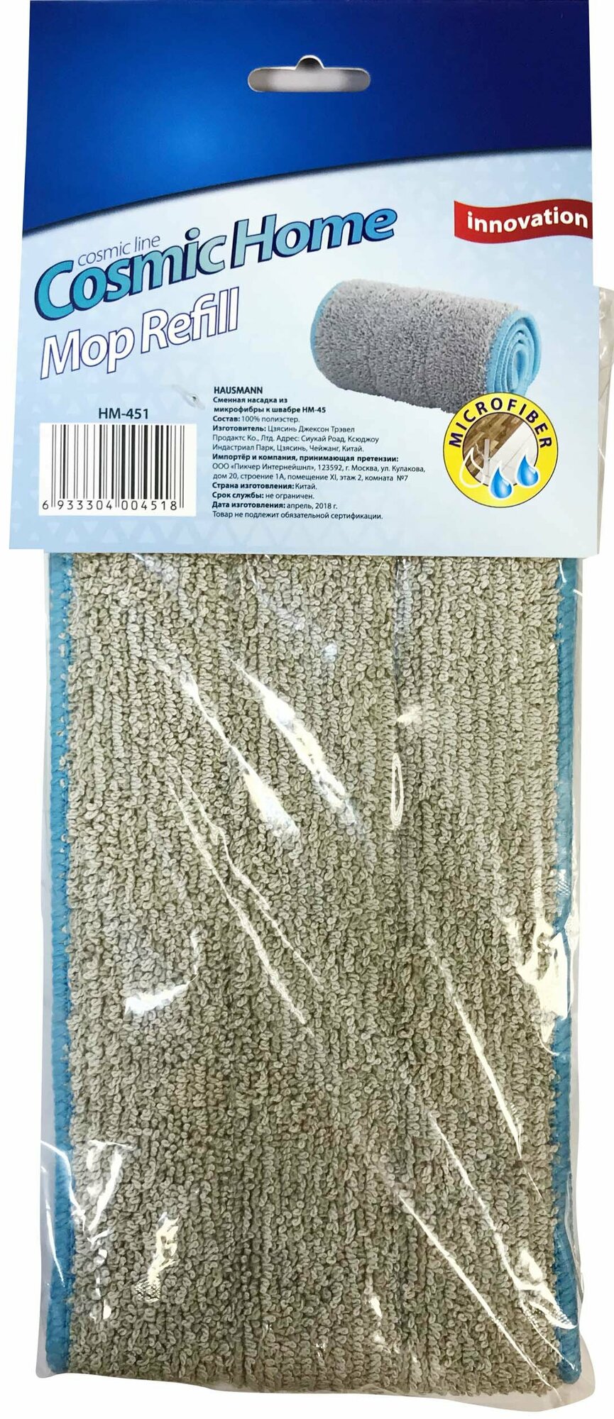 HAUSMANN HM-451 Classic Home SLIDER сменная, из микрофибры для швабры HM-45, HM-45AL