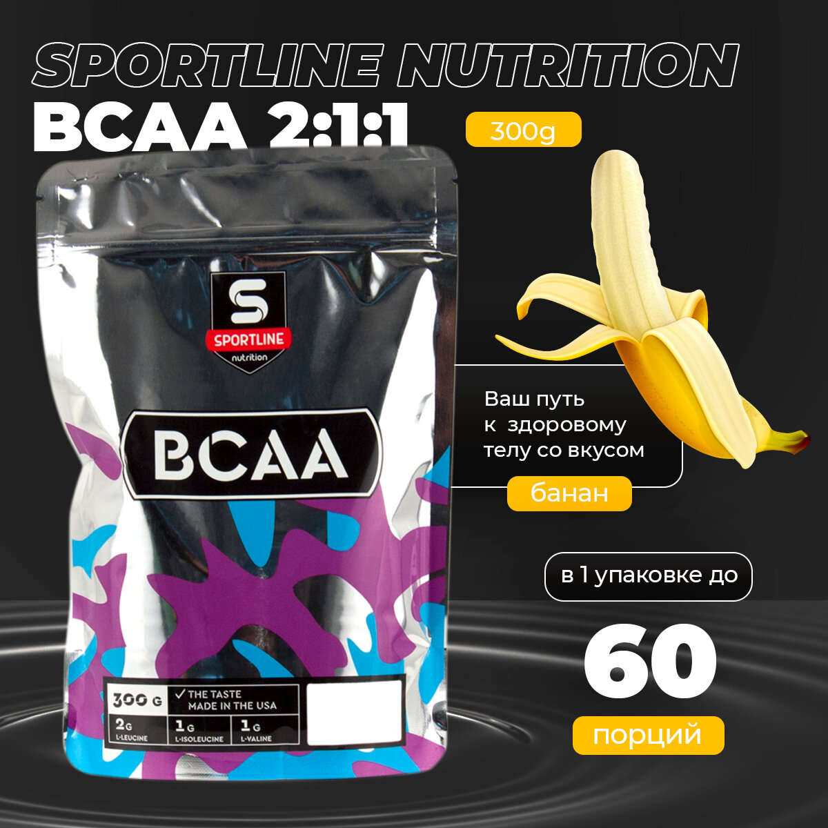 SportLine Nutrition BCAA 2:1:1, банан, 300 гр. пакет