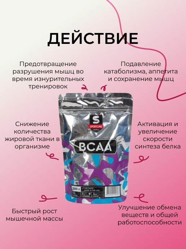 SportLine Nutrition BCAA 2:1:1, клубника, 300 гр. пакет