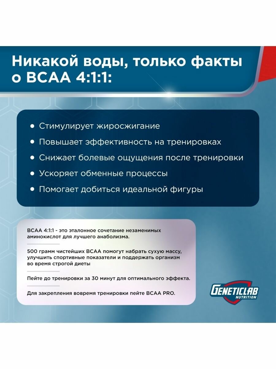 Аминокислоты BCAA 4:1:1 Geneticlab Nutrition 250 грамм груша, Основа твоей мускулатуры БЦАА Генетиклаб