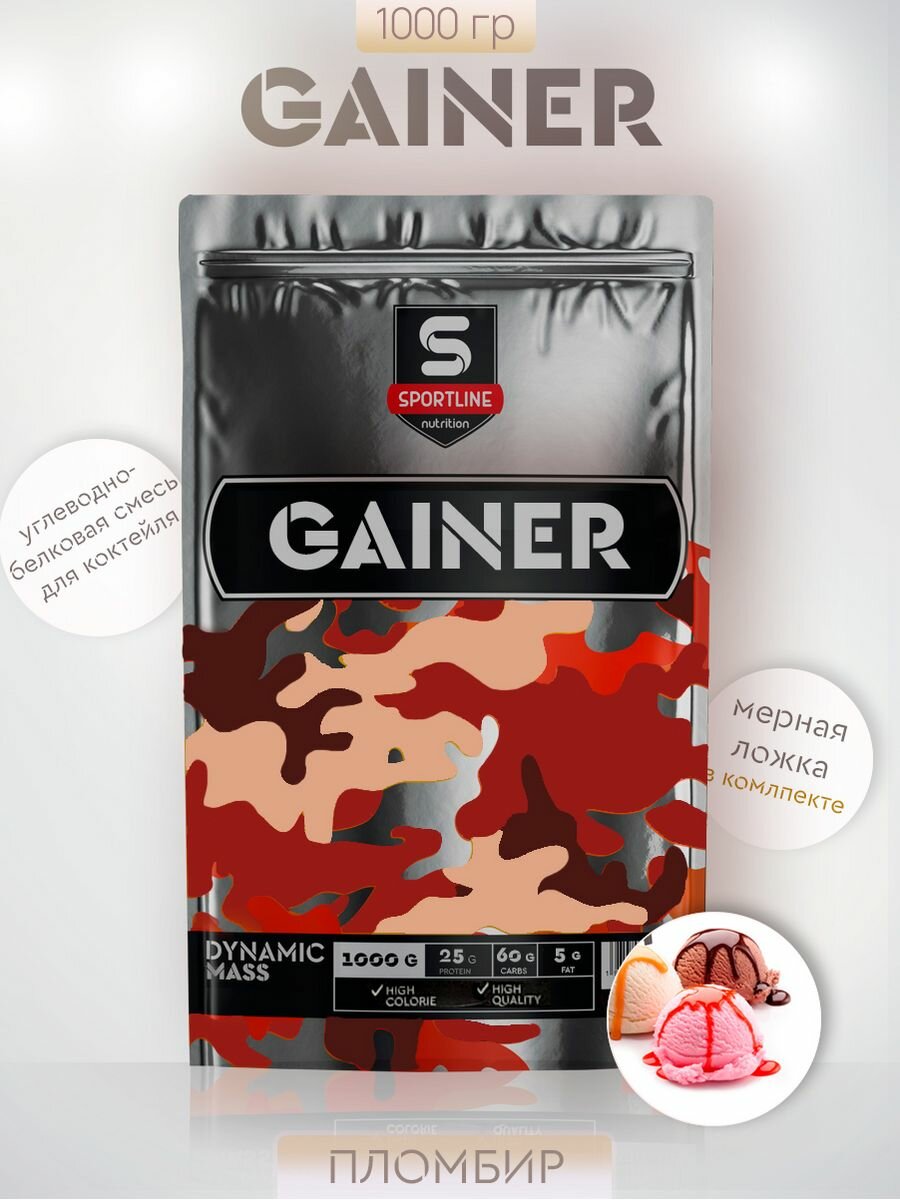 Гейнер SportLine Nutrition Dynamic Mass Powder, пломбир, 1000 гр.