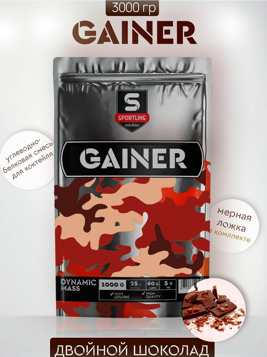 SportLine Nutrition Гейнер Dynamic Mass (3 кг.) двойной шоколад