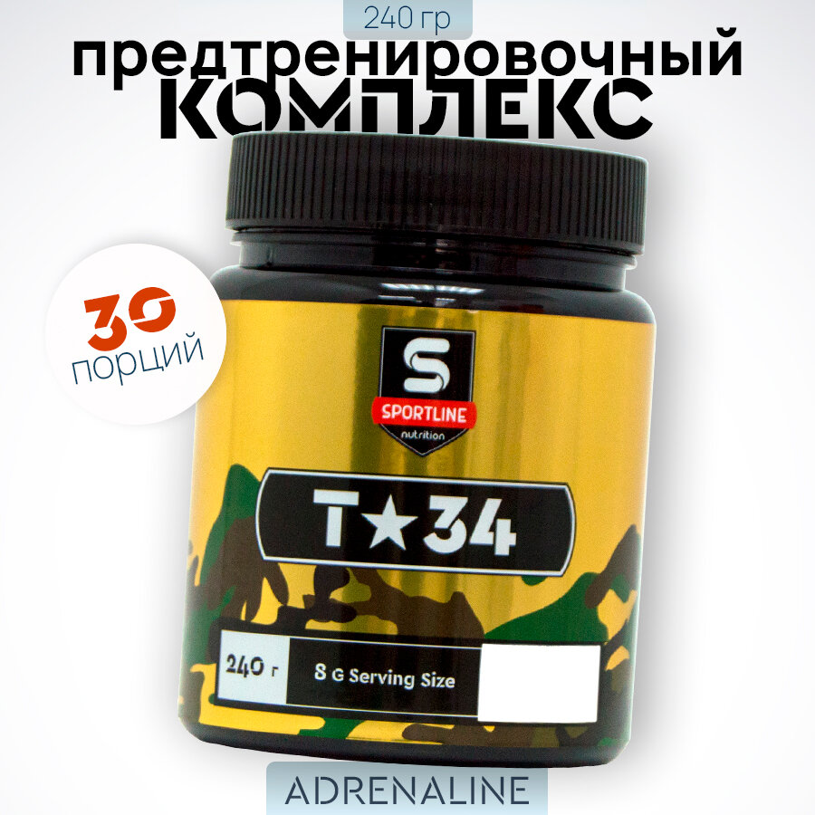 Предтренировочный комплекс SportLine Nutrition T-34, адреналин, 240 гр.