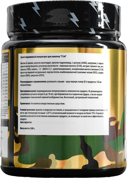 Предтренировочный комплекс SportLine Nutrition T-34, адреналин, 240 г SportLine 4600925 .