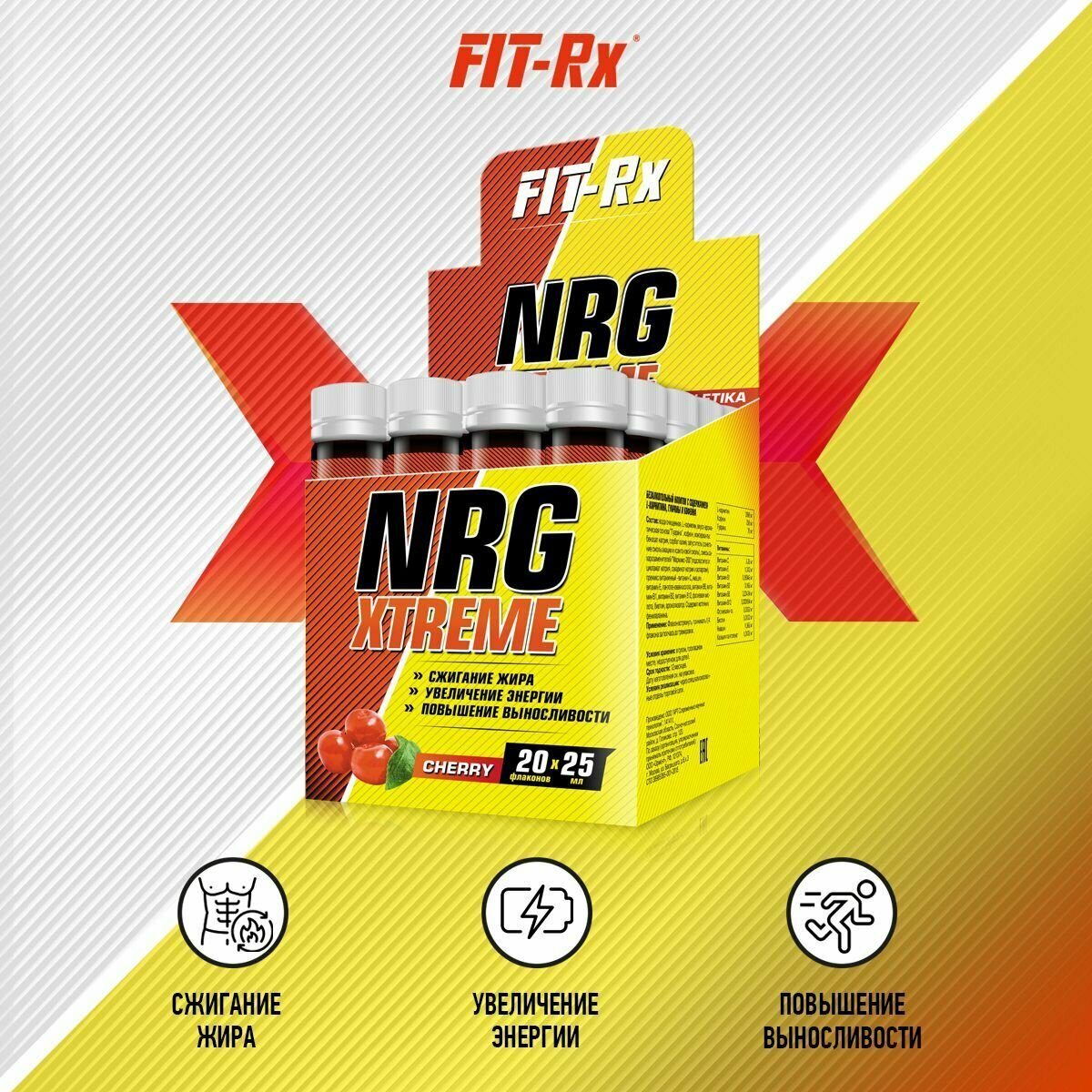Предтренировочный комплекс FIT-RX "NRG Xtreme", вишня, 20 х 25 мл