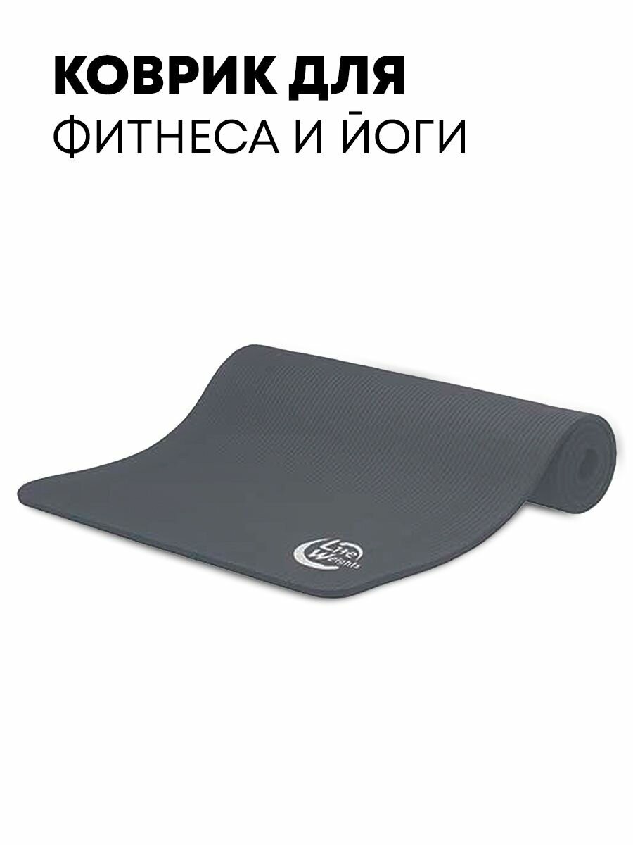 Коврик для йоги и фитнеса LiteWeights 180*60*1см 5410LW, антрацит