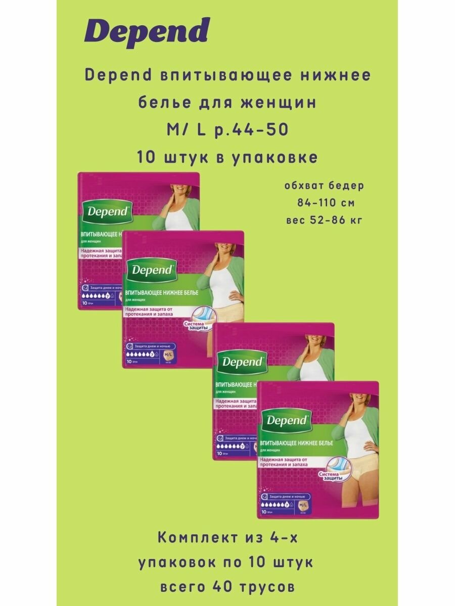 Depend / Депенд - женское впитывающее белье, размер M/L, 10 шт.