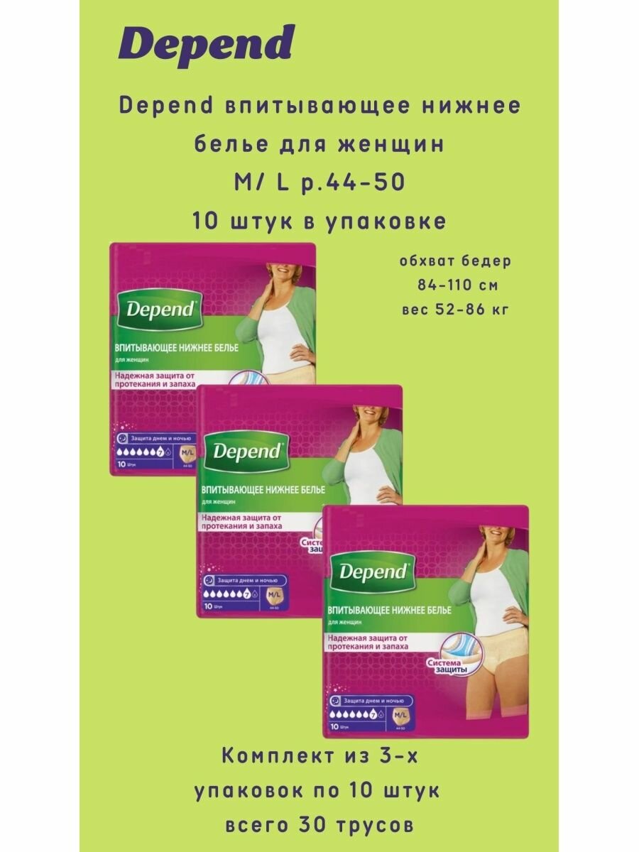 Depend / Депенд - женское впитывающее белье, размер M/L, 10 шт.