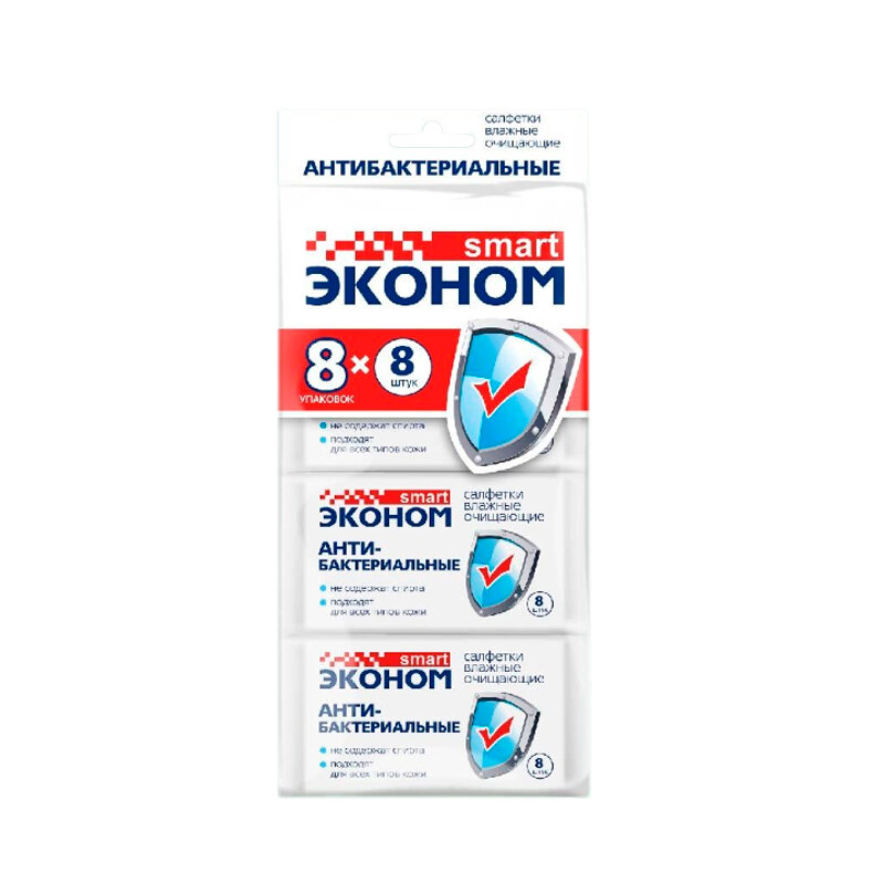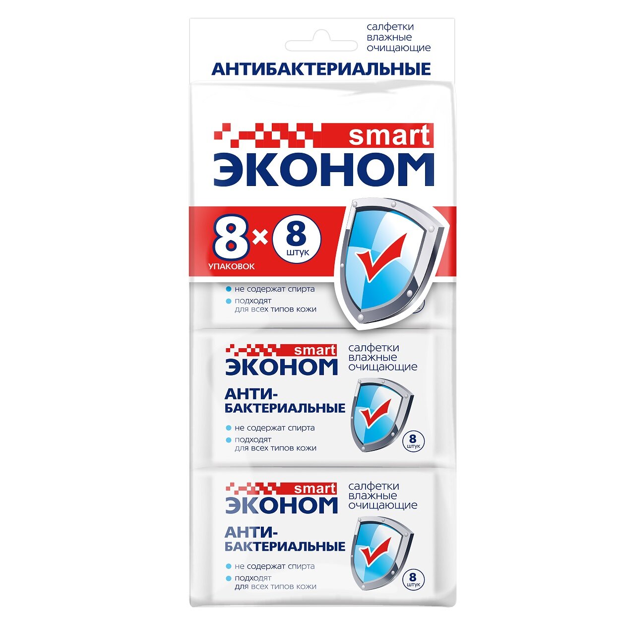 Салфетки Эконом Smart Антибактериальные Очищающие 8*8шт