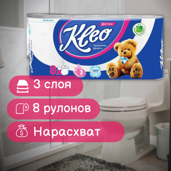 Kleo туалетная бумага 3х сл.Ultra 8рул. (белая)