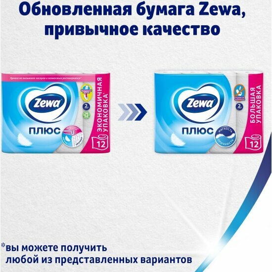 Бумага туалетная Zewa Плюс Белая, 2 слоя, 12 рулонов, 2 уп.