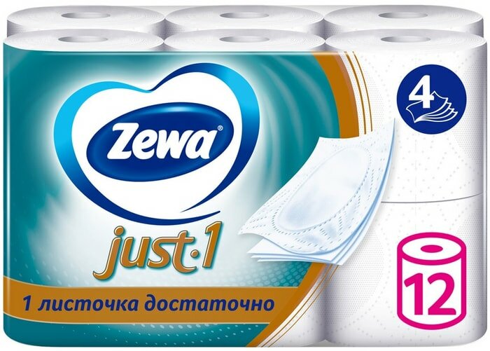 Купить Туалетная бумага Zewa Just 1, 4 слоя, 12 рулонов