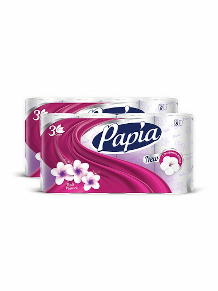 Papia Туалетная бумага Балийский Цветок, 3-слойная, 4 рулона, 2 уп