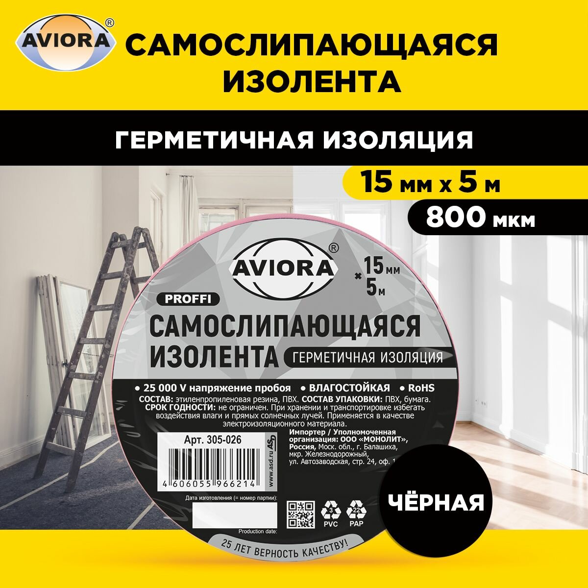 AVIORA Изолента 15мм 5м самослипающаяся черная ЕПР 305-026