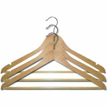 Вешалка-плечики деревянная Attache с выемками и перекладиной натуральная (размер 46, 3 штуки в упаковке)