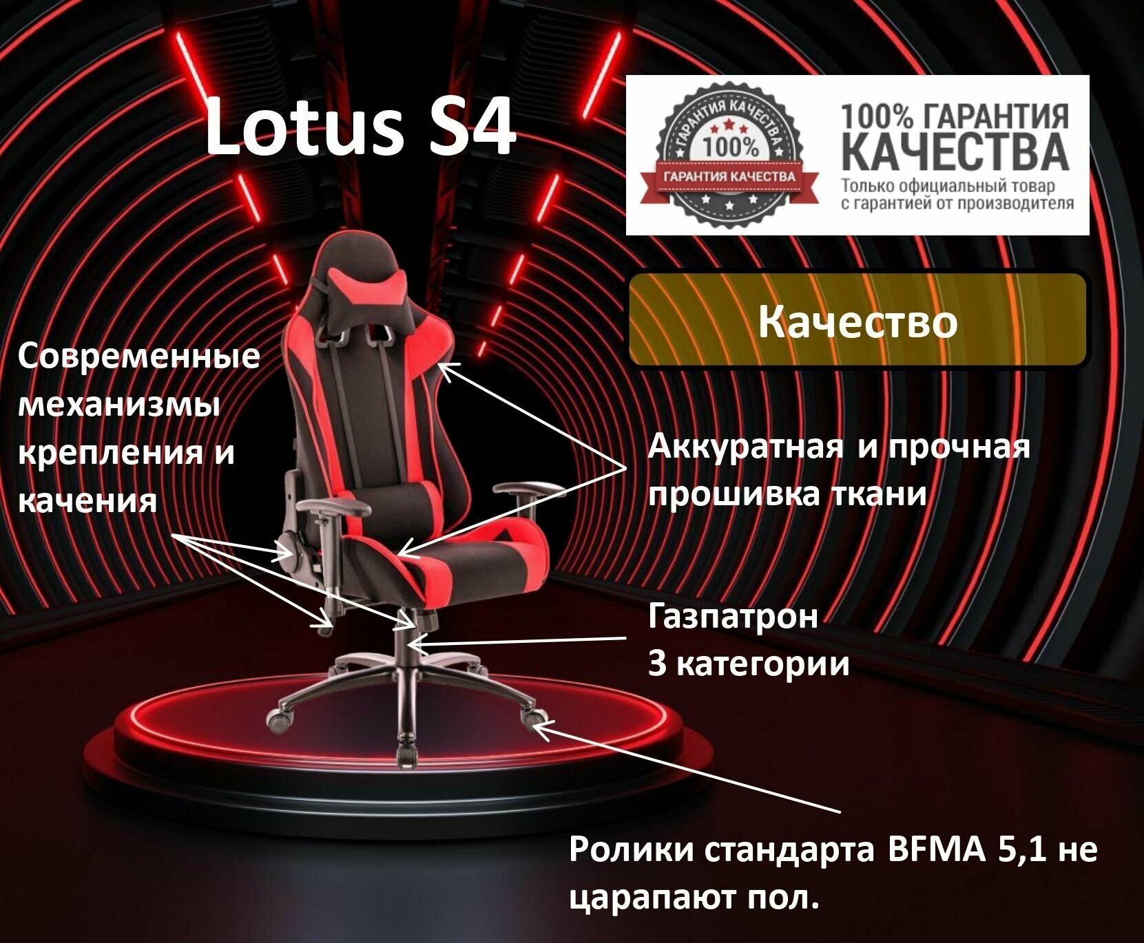 Игровое кресло для геймеров Everprof Lotus S4 обивка: текстиль, цвет: черный/красный