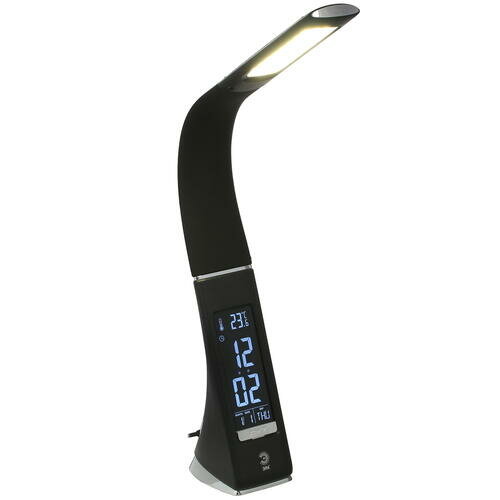 Офисная настольная лампа светодиодная с диммером и выключателем термометром будильником и часами NLED-461-7W-BK (ЭРА)