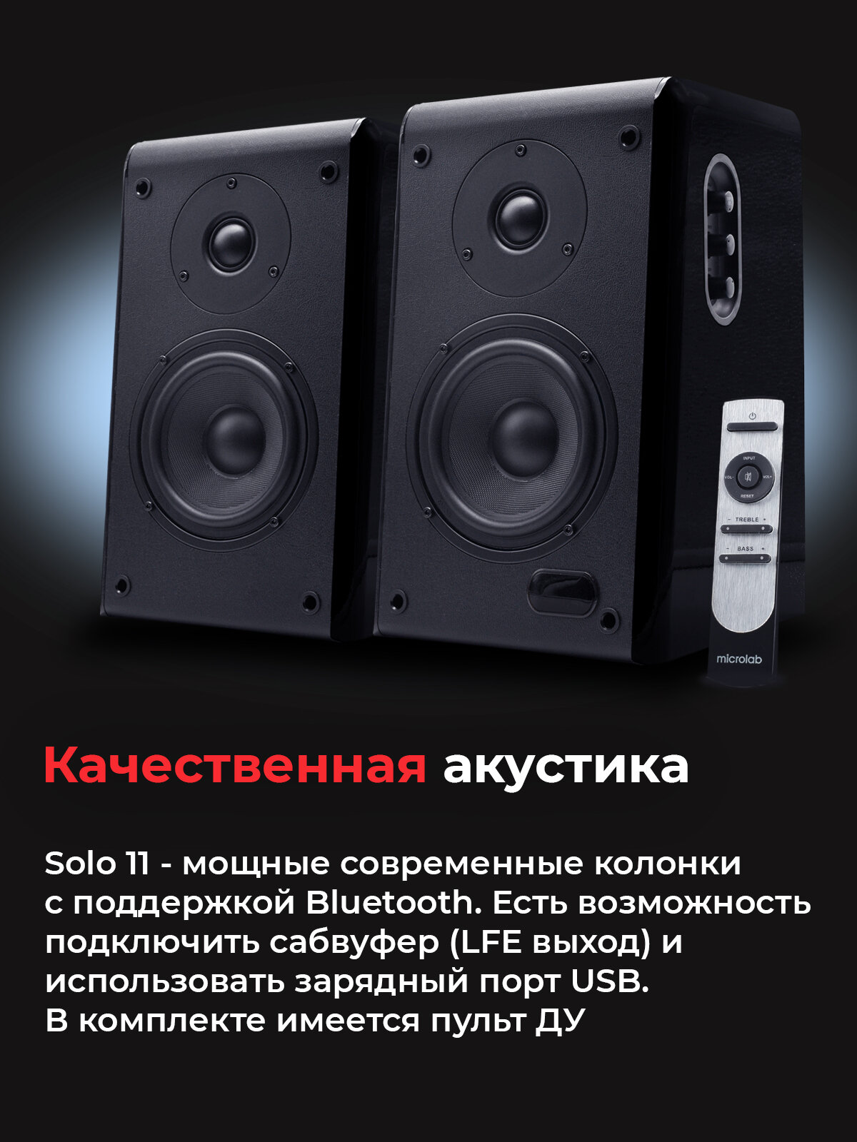 Колонки Microlab SOLO 11 мощность 100 Вт,Bluetooth.пульт.дерево,чёрный интересное: