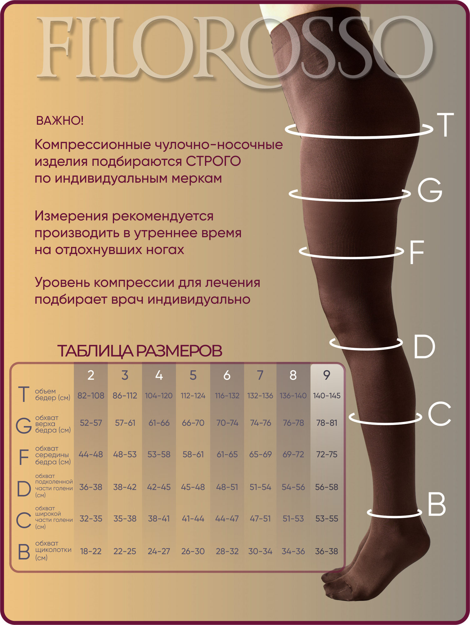 Колготки компрессионные FILOROSSO Profilactica 140 den, 1 класс, кофе, размер 9