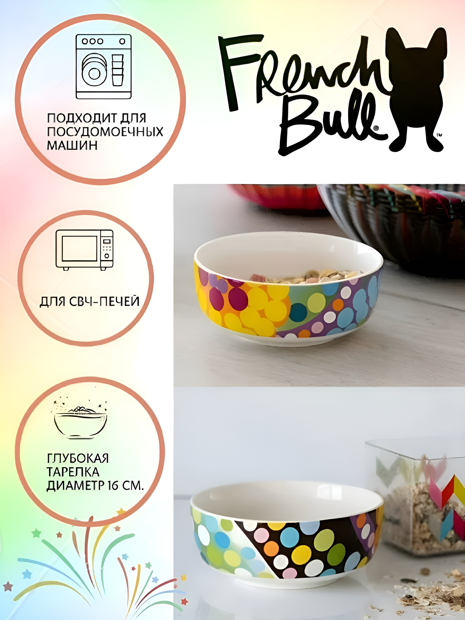 Глубокая фарфоровая тарелка French Bull Bindi, 16см, 800мл, белая с рисунком