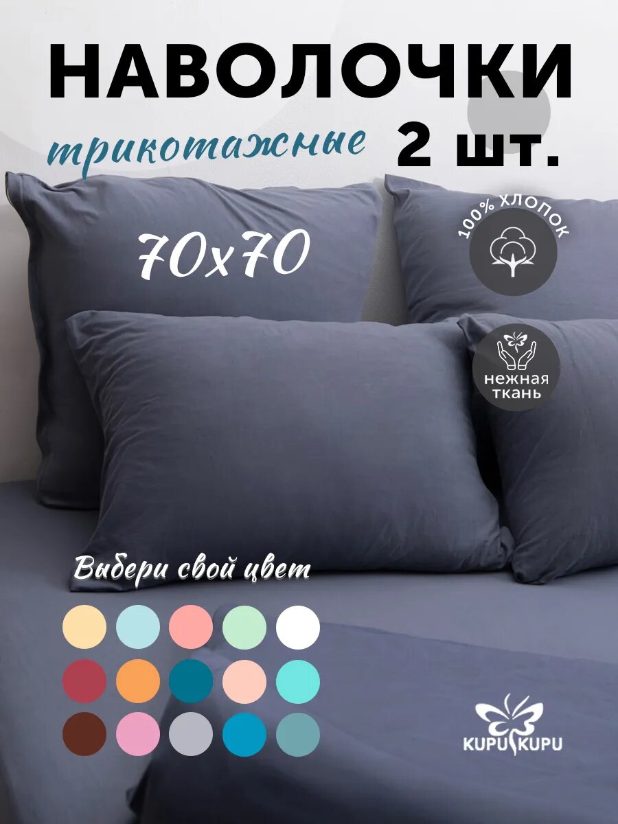 Наволочки 70х70 KUPU-KUPU трикотажные, на молнии 2шт, графит