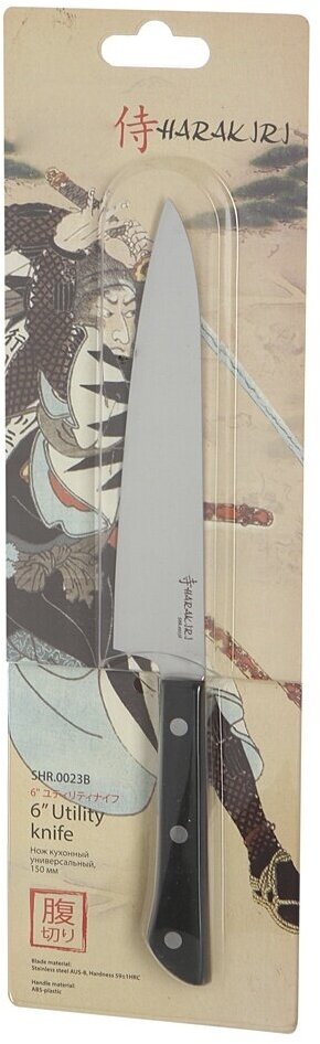 Нож кухонный универсальный SAMURA HARAKIRI SHR-0023B, 150 мм, коррозионно-стойкая сталь, ABS пластик, черная рукоять