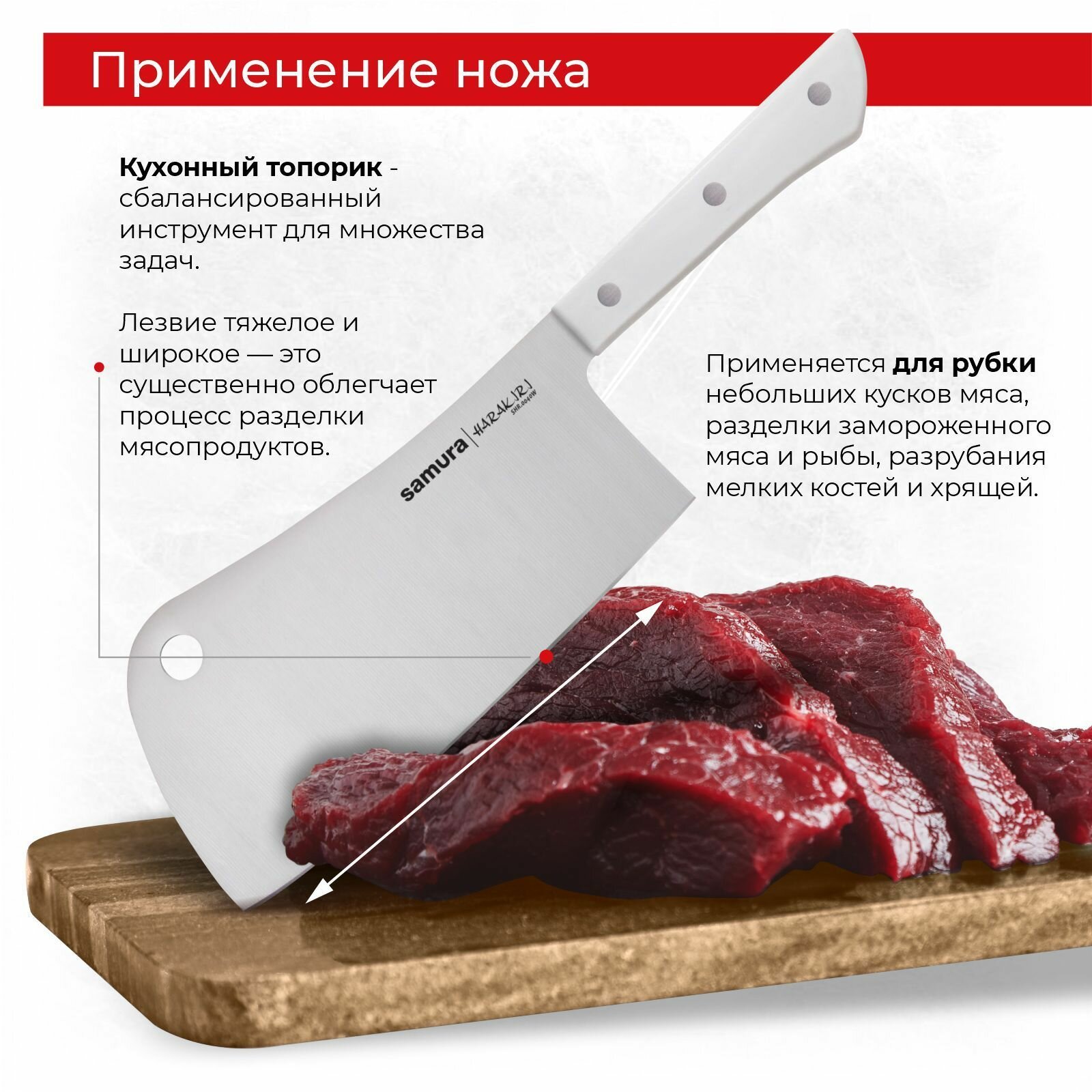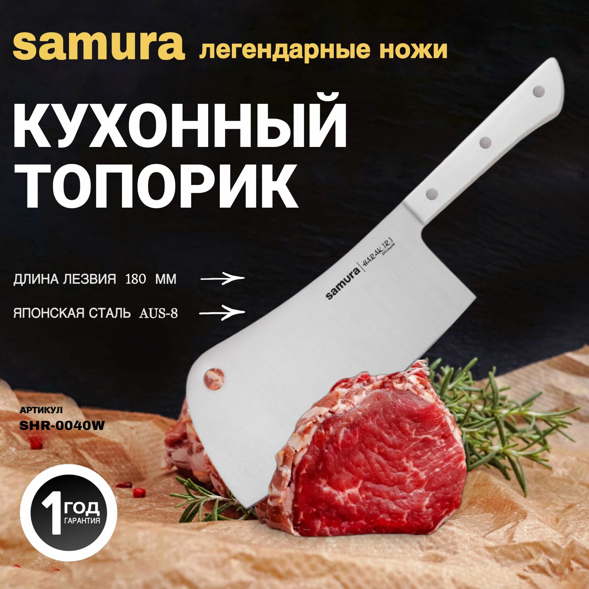 Топорик для мяса кухонный Samura HARAKIRI 180 мм SHR-0040W