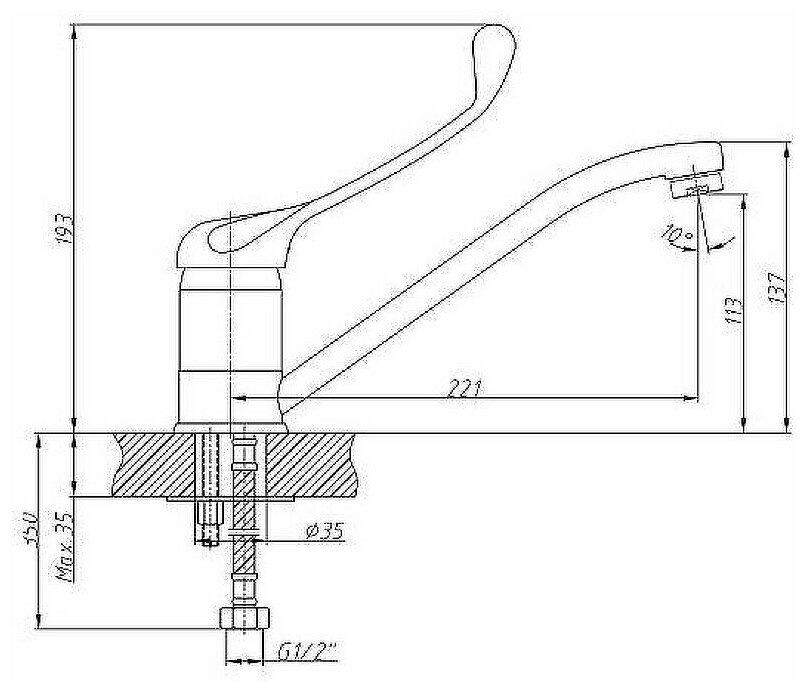 Смеситель для кухни 40к HB4254 HAIBA медицинский п/шпильку
