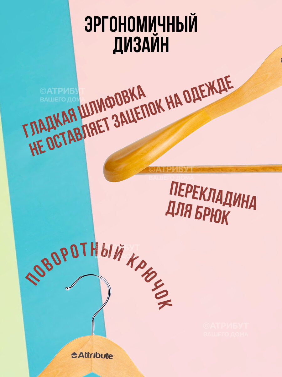 Вешалка для верхней одежды "CLASSIC" ATTRIBUTE HANGER, 44см, натуральное дерево