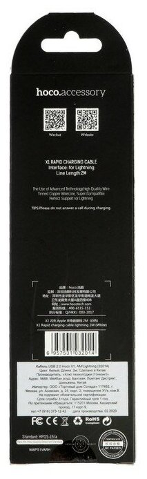 СохранитьUSB дата кабель Lightning, HOCO, X1, 2M, белый интересное: