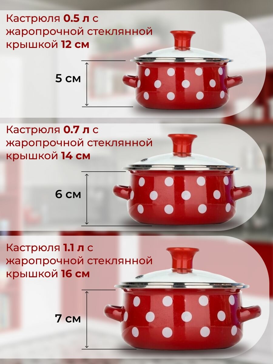 Набор посуды Kelli KL-4169 Эмаль 6 предметов 0,5л 0,7л 1,1л (Горох)