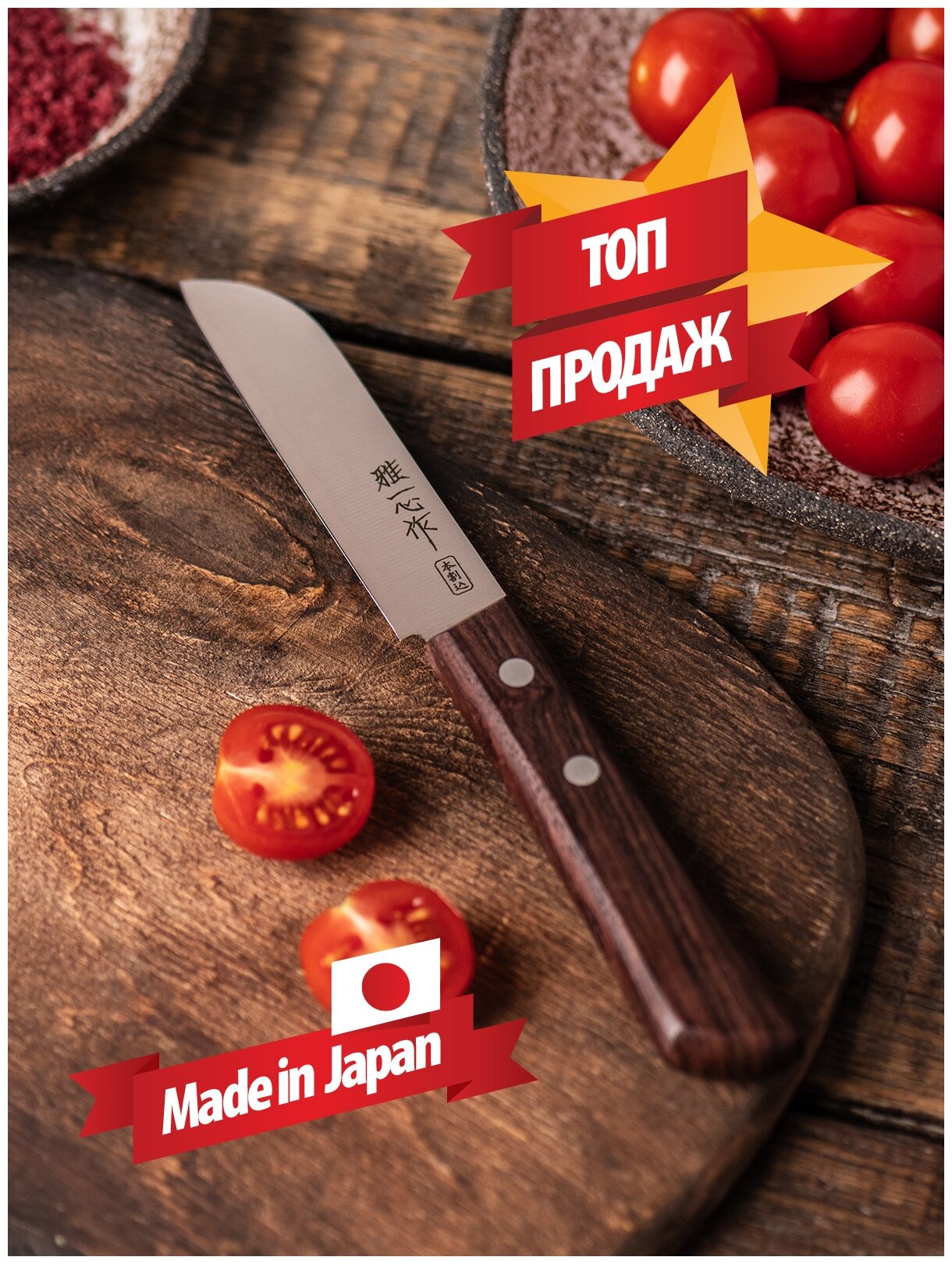 | Плюсы: | Японский нож, эти всё сказано. От дизайна до качества |
