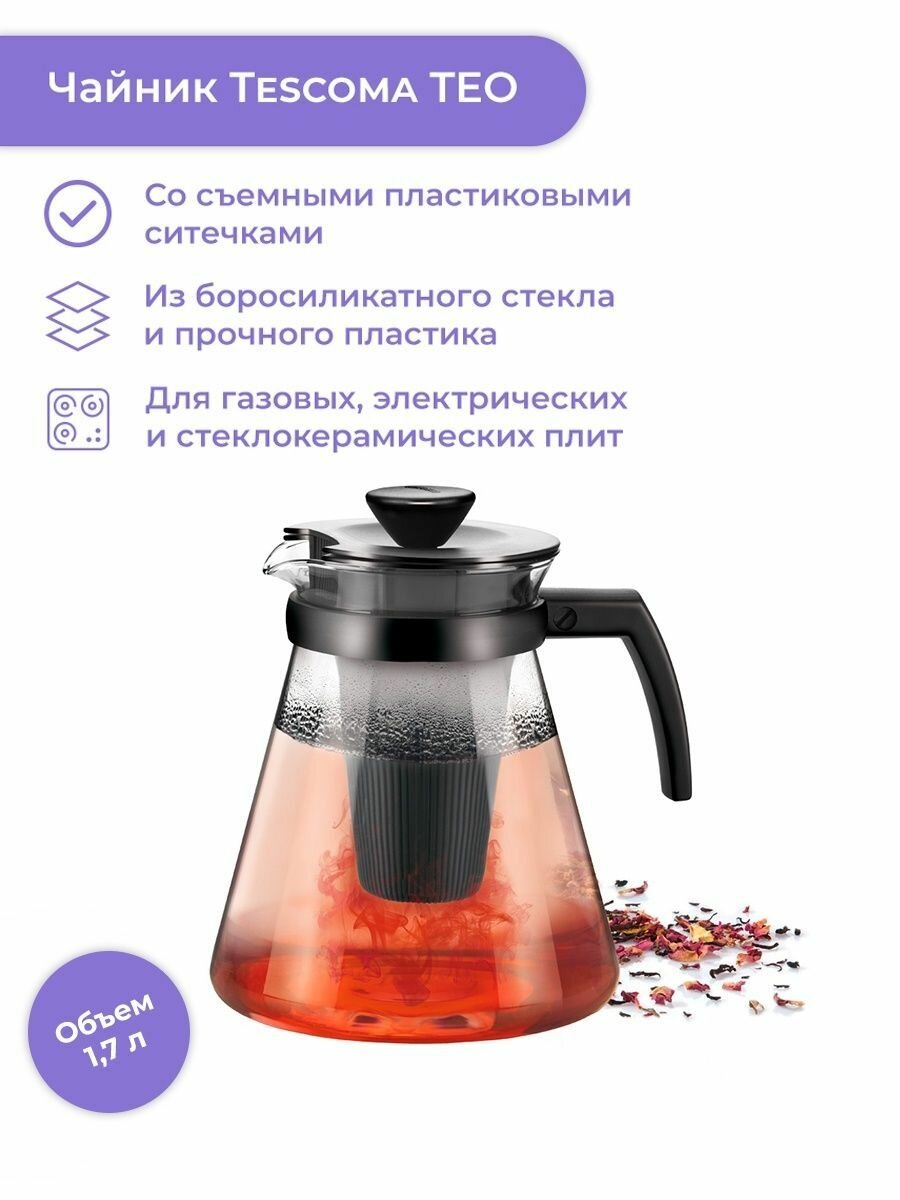 Чайник заварочный стеклянный с сито Tescoma Teo 1,7 л интересное: