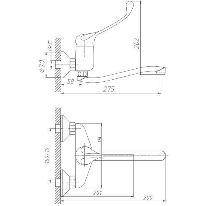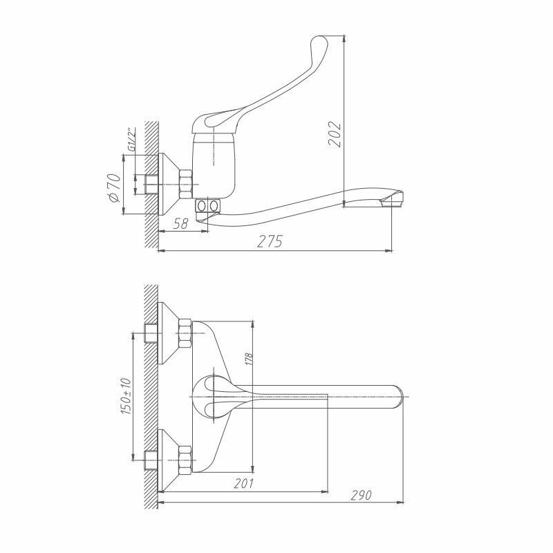 Смеситель настенный 40к HB4654 HAIBA медицинский S-нос