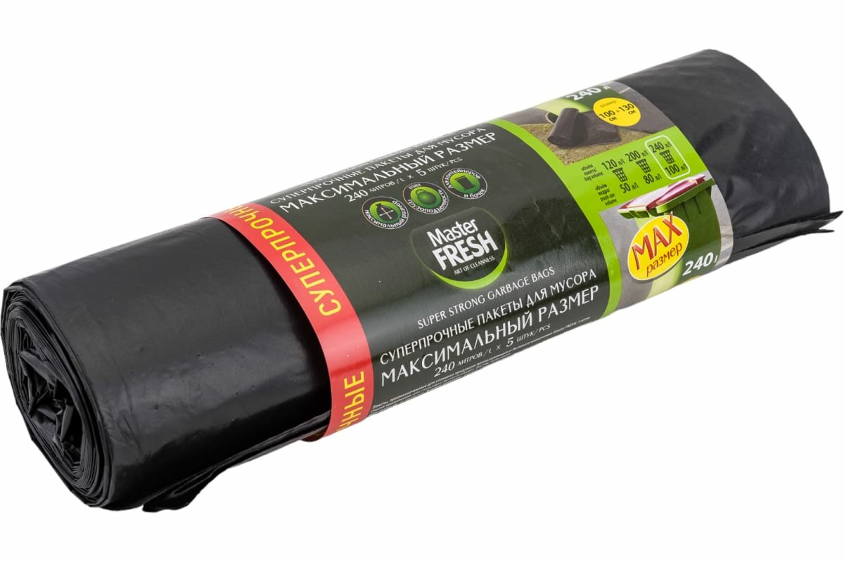 Купить Master FRESH Пакеты для мусора Максимальный размер, суперпрочные, 240 л, 5 шт в уп