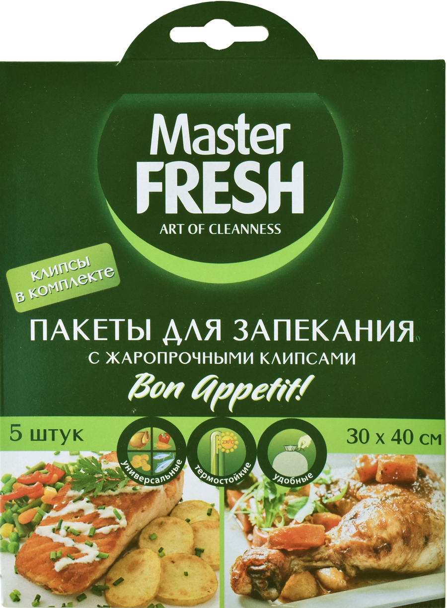 хоз/т_master fresh_пакеты д/запек.5шт жаропроч.клипсы картон.упак 9G3007