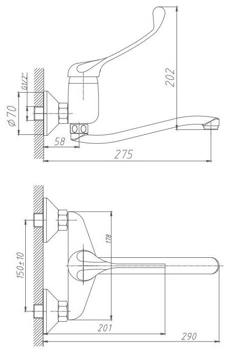 Смеситель настенный 40к HB4654 HAIBA медицинский S-нос