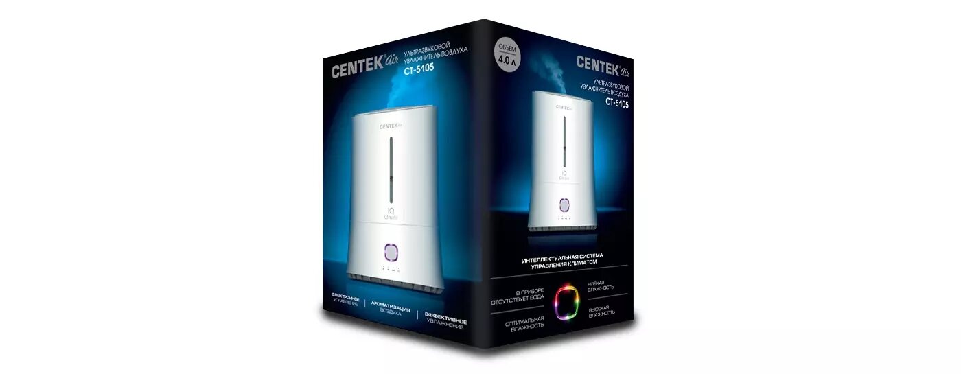 Ультразвуковой увлажнитель воздуха Centek СТ-5105 330мл/ч 12ч раб., 4л, IQ Climate, Ароматизация