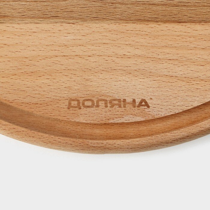 Доляна Доскa рaзделочнaя с кровостоком Премиум «Круглaя», d=25 см, бук
