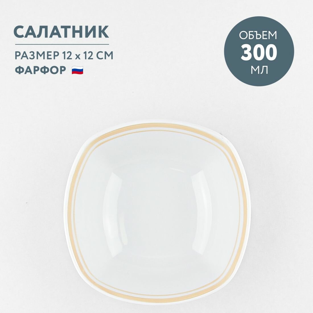 Купить Салатник фарфоровый квадратный 300 мл Дулевский фарфор Отводка люстром
