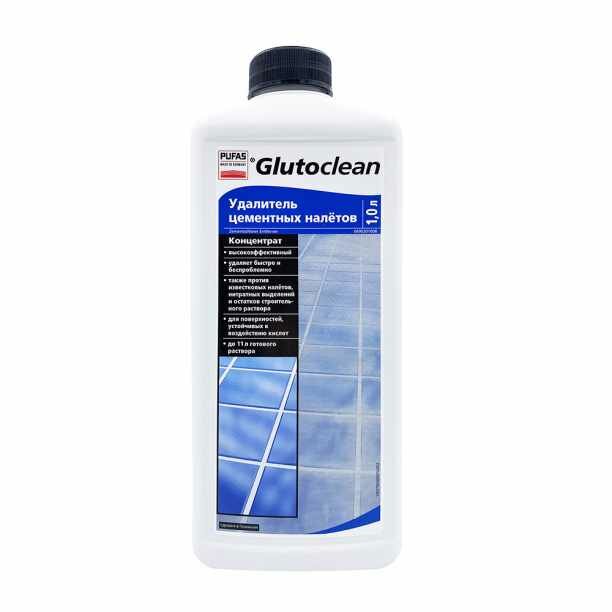 Удалитель цементных налетов, Pufas Glutoclean, 1 л. для очистки кафеля от остатков цементных налётов, остатков бетона и строительного раствора, известковых налётов, выцветов и неорганических загрязнени