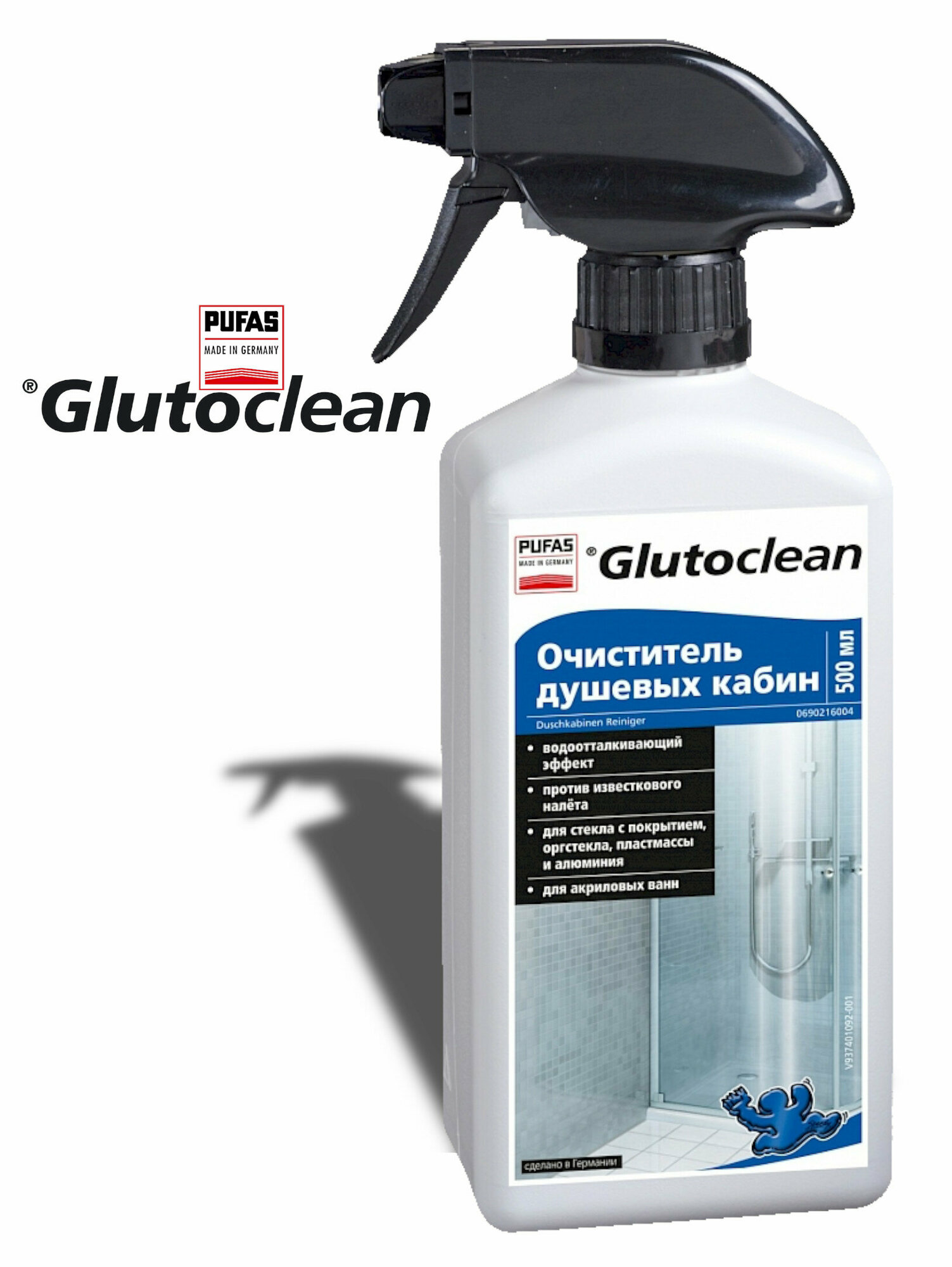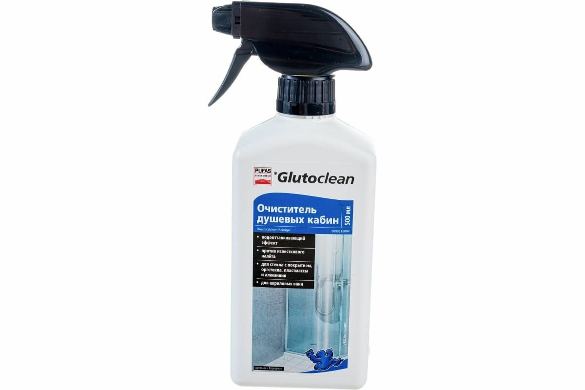 Очиститель для душевых кабин, Pufas Glutoclean, 500 мл.для удаления известковых и мыльных налетов на облицовочной плитке, швах между плиткой, стеклянных разделительных стенах и душевых занавесках.