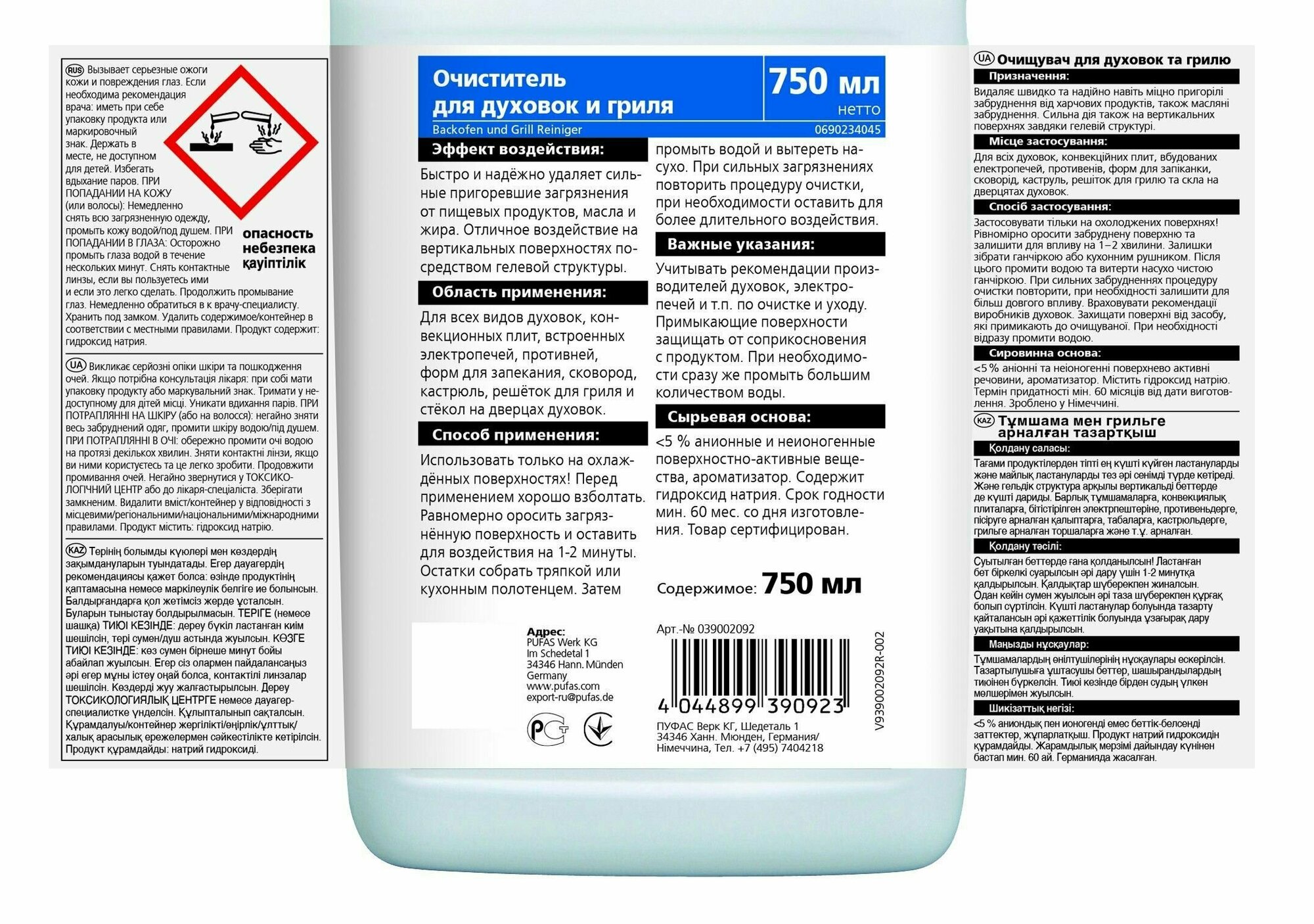 Пуфас Glutoclean N390 Очиститель для духовок и гриля (0,75л) Gl.Backofen&Grillrei