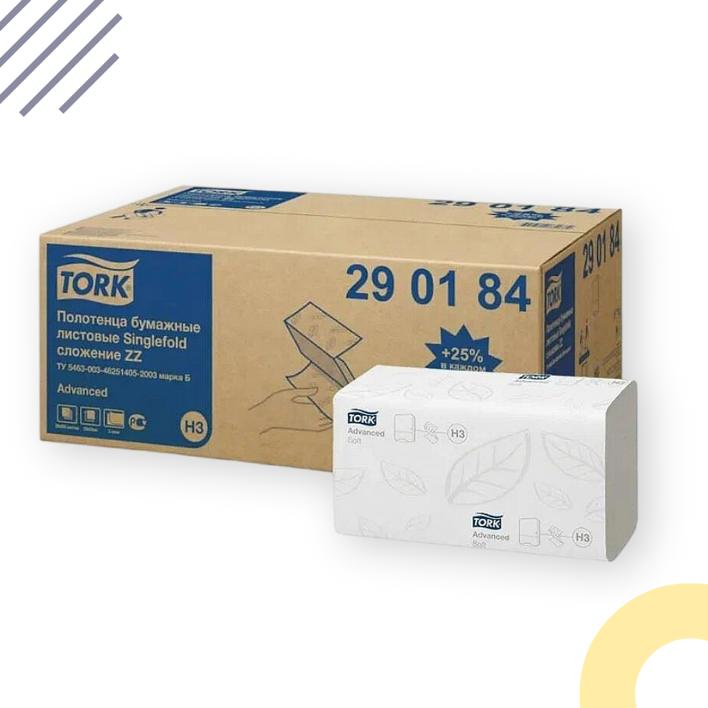 Полотенца бумажные листовые Tork Advanced H3 ZZ-сложения 2-слойные 20 пачек по 200 листов (артикул производителя 290184)
