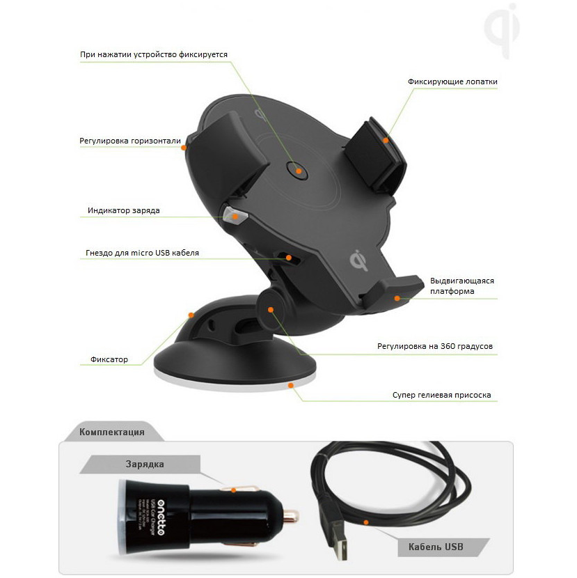 Держатель Onetto Charging Car&Desk Mount Easy Flex Wireless на гелевой присоске с беспроводной зарядкой, цвет Черный (EWC-3000) интересное: