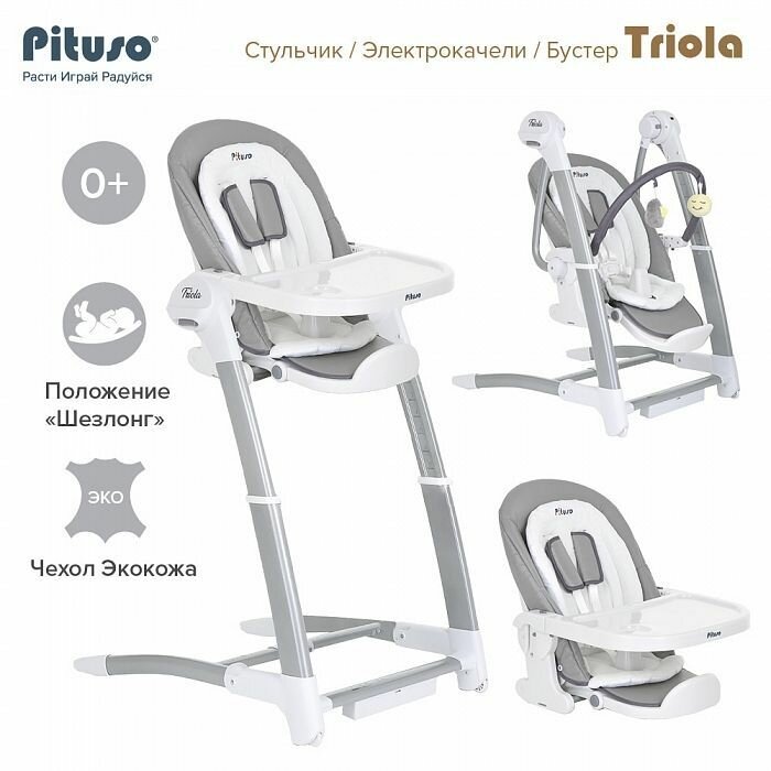 Купить Стульчик для кормления Pituso Triola 3 в 1 темно -серый, электрокачели