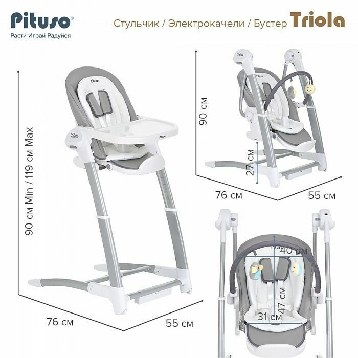 СохранитьСтульчик для кормления Pituso Triola 3 в 1 темно -серый, электрокачели интересное: