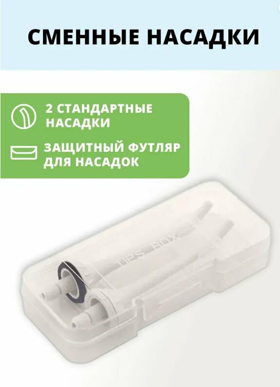 Большой резервуар Водонепроницаемый, + защитная заглушка на разъеме для штекера Долго держит заряд Две насадки |